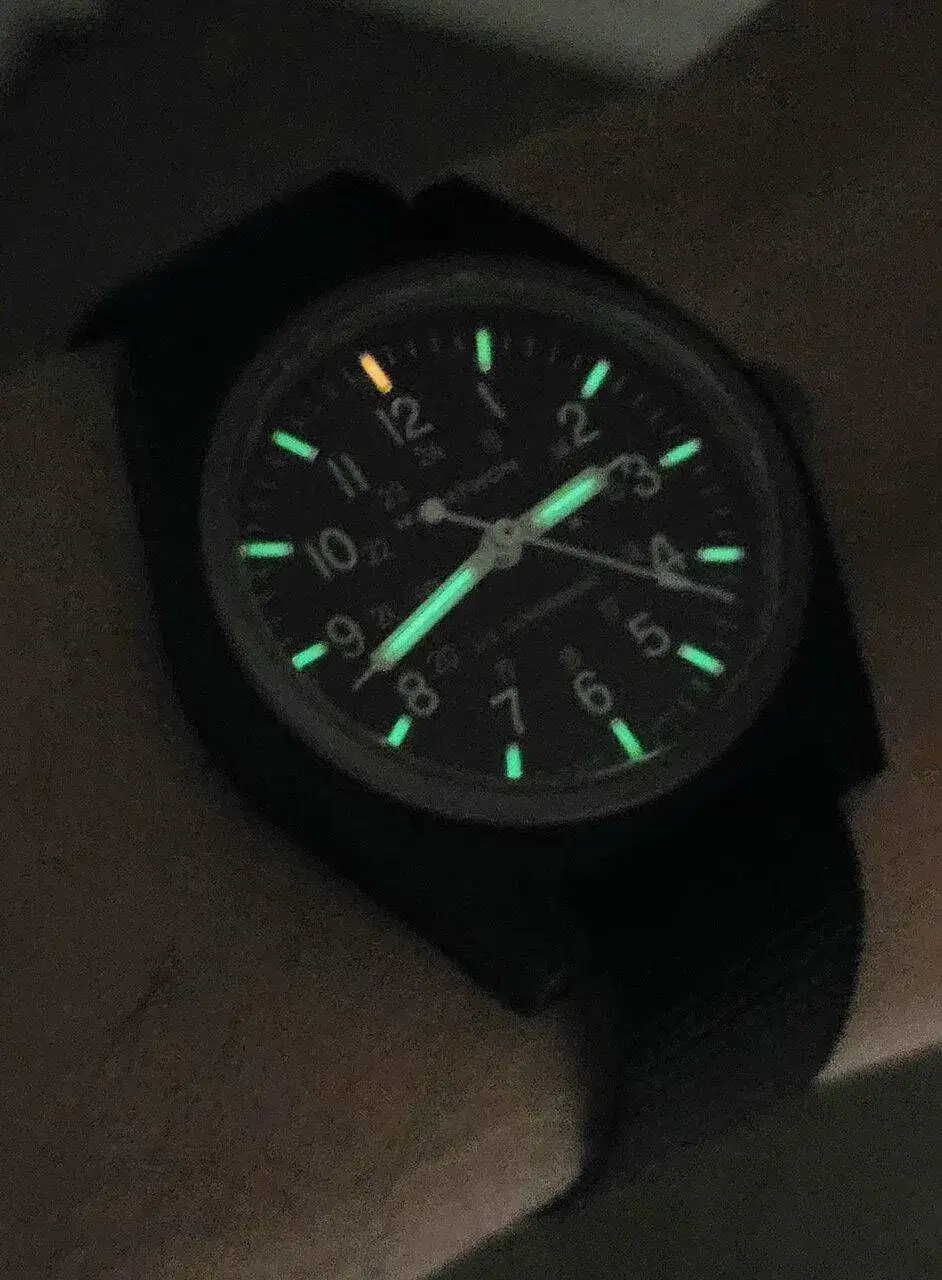 Mi primer reloj con tubos de tritio, un cuarzo de menos de 300€ en el que el segundero acierta a todos los indices, increíble!