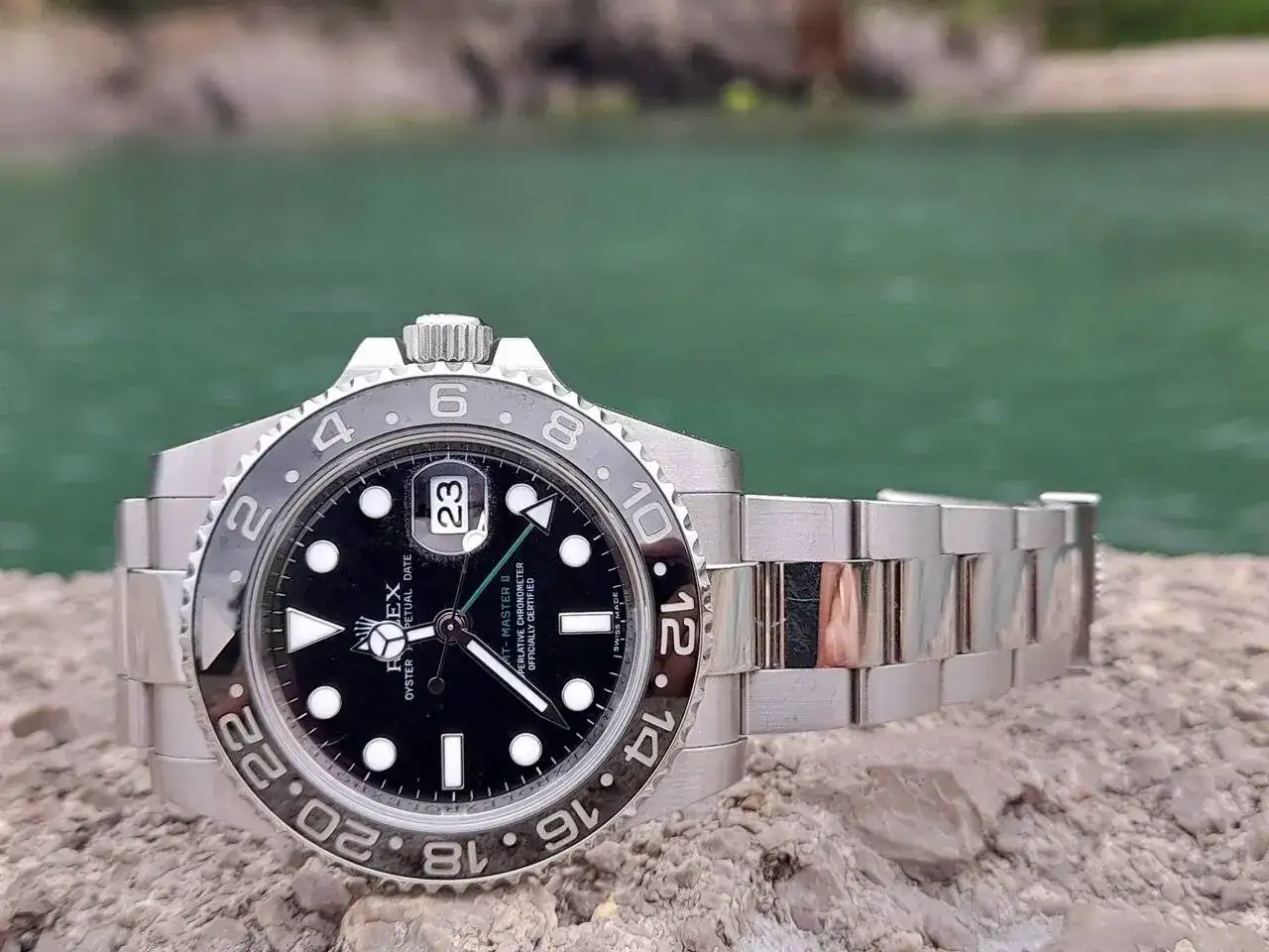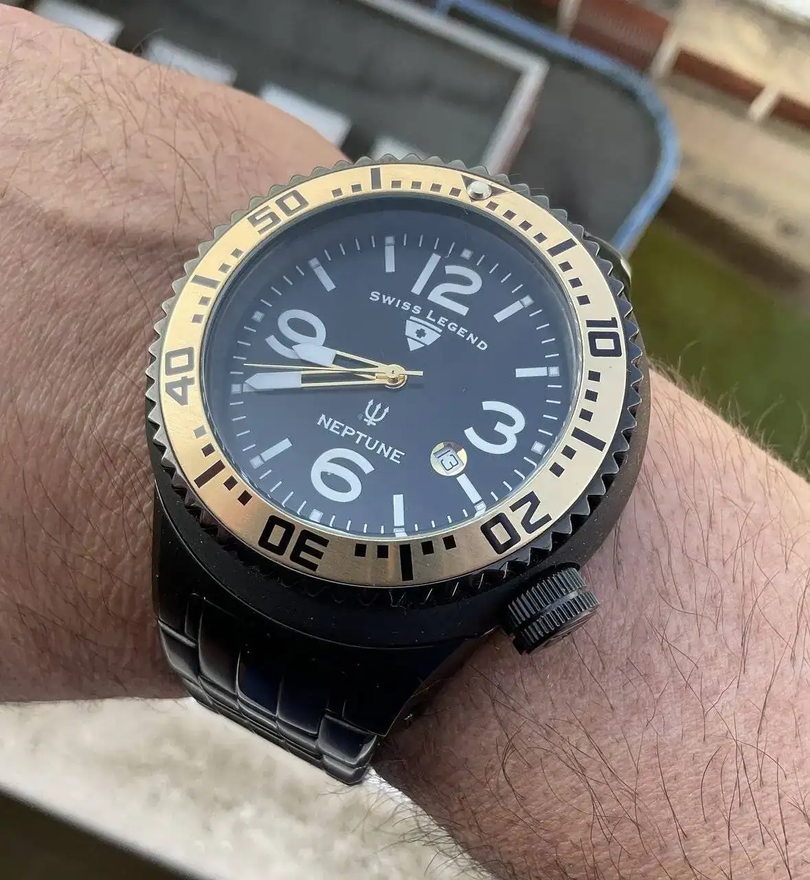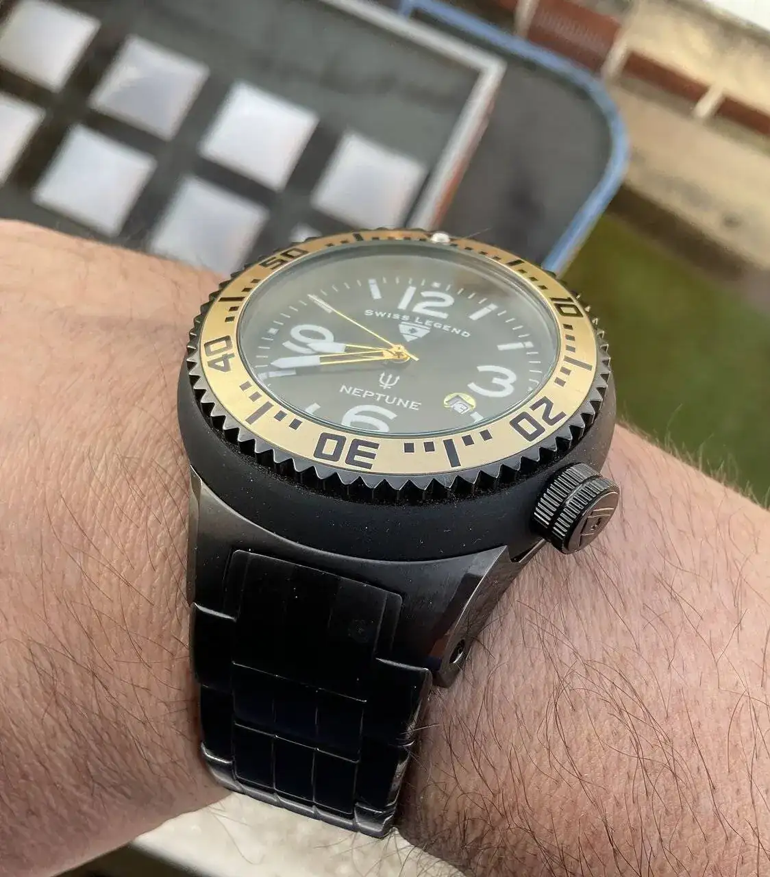 Visibilidad perfecta, bisel bidireccional descendente (todo un hallazgo, después de tantos divers), caja y brazalete de titanio, fondo visto, GMT (es un 12 horas, la aguja está escondida bajo la horaria y solo la saco cuando lo necesito. Y va de maravilla, a +2 segundos/ día.