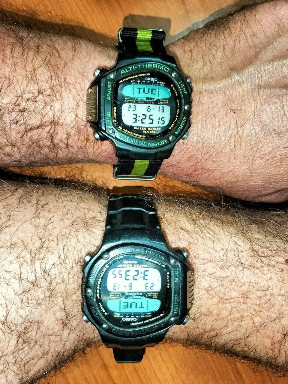 No he visto muchos relojes así en otras muñecas. Éste se lo he encontrado a otro trabajador de la noche. El mío es el de la NATO.