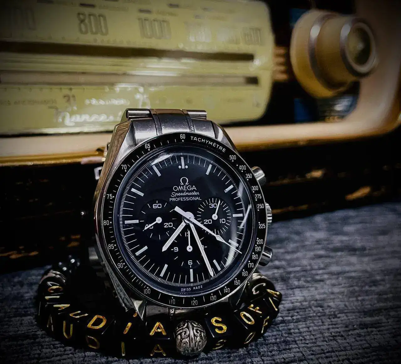 La que tiene de fondo esa antigua radio es preciosa y la de la esfera es brutal. Muy bonita también esa pulsera que ha hecho tu hija