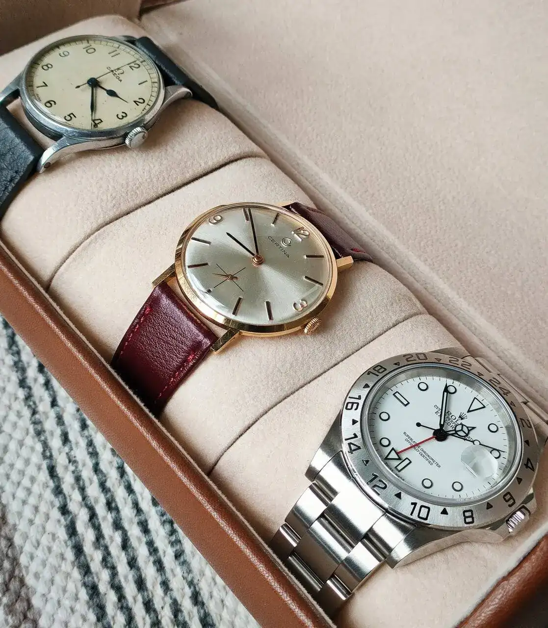 Que bonito, y variado trío amigo.Hoy, uno de mis blanquitos, saldrá el Certina sesentero.
