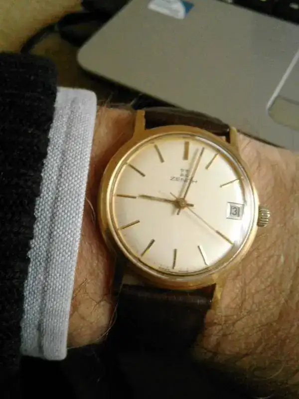 Y especial por su tamaño (34mm). El primero que se puso a tiro con este dial fue uno de tamaño cadete, y no quise arriesgarme a perderlo. Compenso su pequeño tamaño con una correa bund.