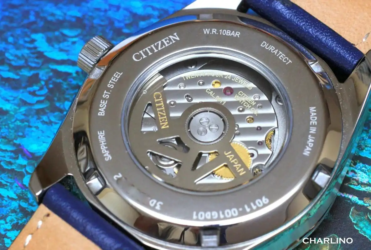 El movimiento también está a la altura, un fiable Citizen 9011 de manufactura propia, razonablemente decorado, con 28.800 alternancias/hora y bastante más preciso en el uso real que los márgenes que suelen dar las marcas (+20/-10 seg. al día en este caso).