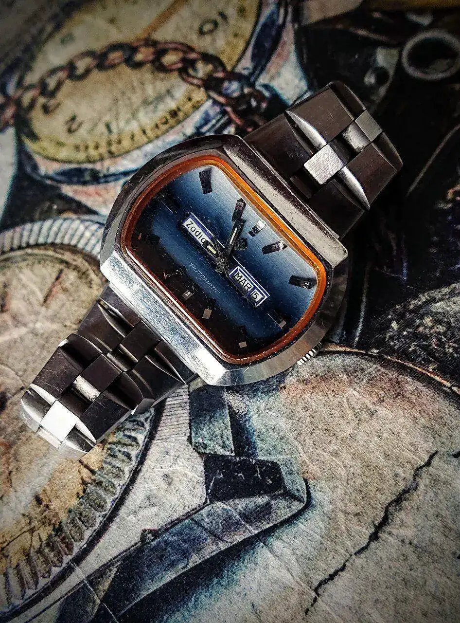 Foto de calendario. El reloj con el encanto de los sesenta y con el atrevimiento de aquella época.¡Buenos días! Hoy un setentero de la Zodiac, con calibre acelerado, diseño ckaramente de su época y, lo que más me gusta, un brazalete increíble. Con un tacto, un peso y una ergonomía peefectos 👌