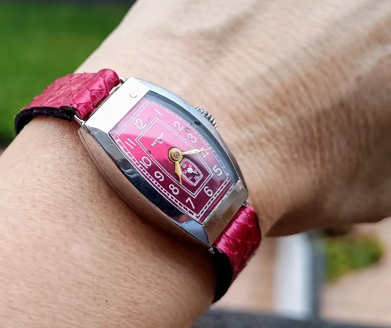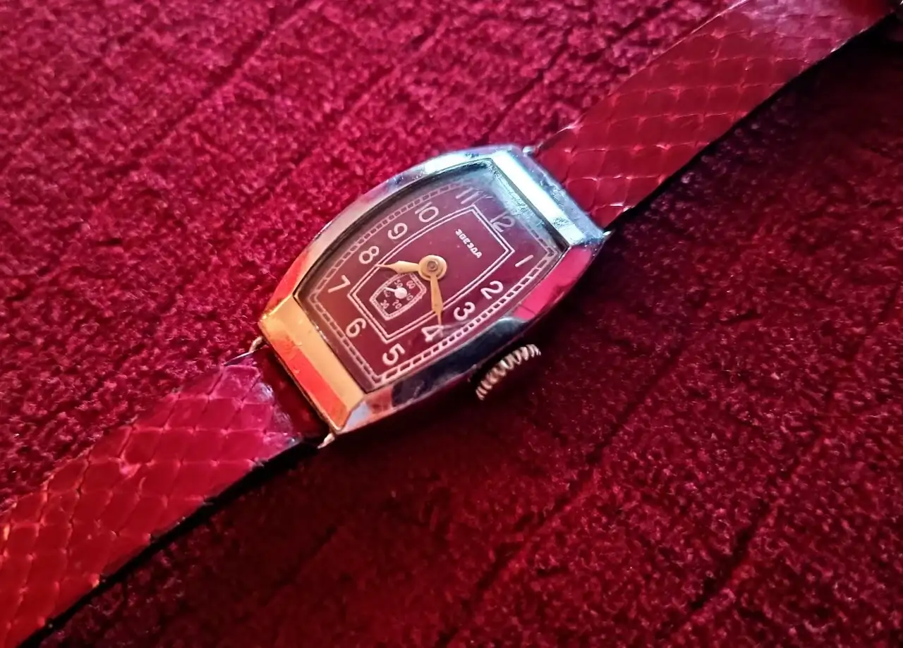 !!Pues en la foto parece mas un color cereza o purpura que rojo, que le queda muy bien.Ualaaaaa qué apertura: cumpleaños y relojazo