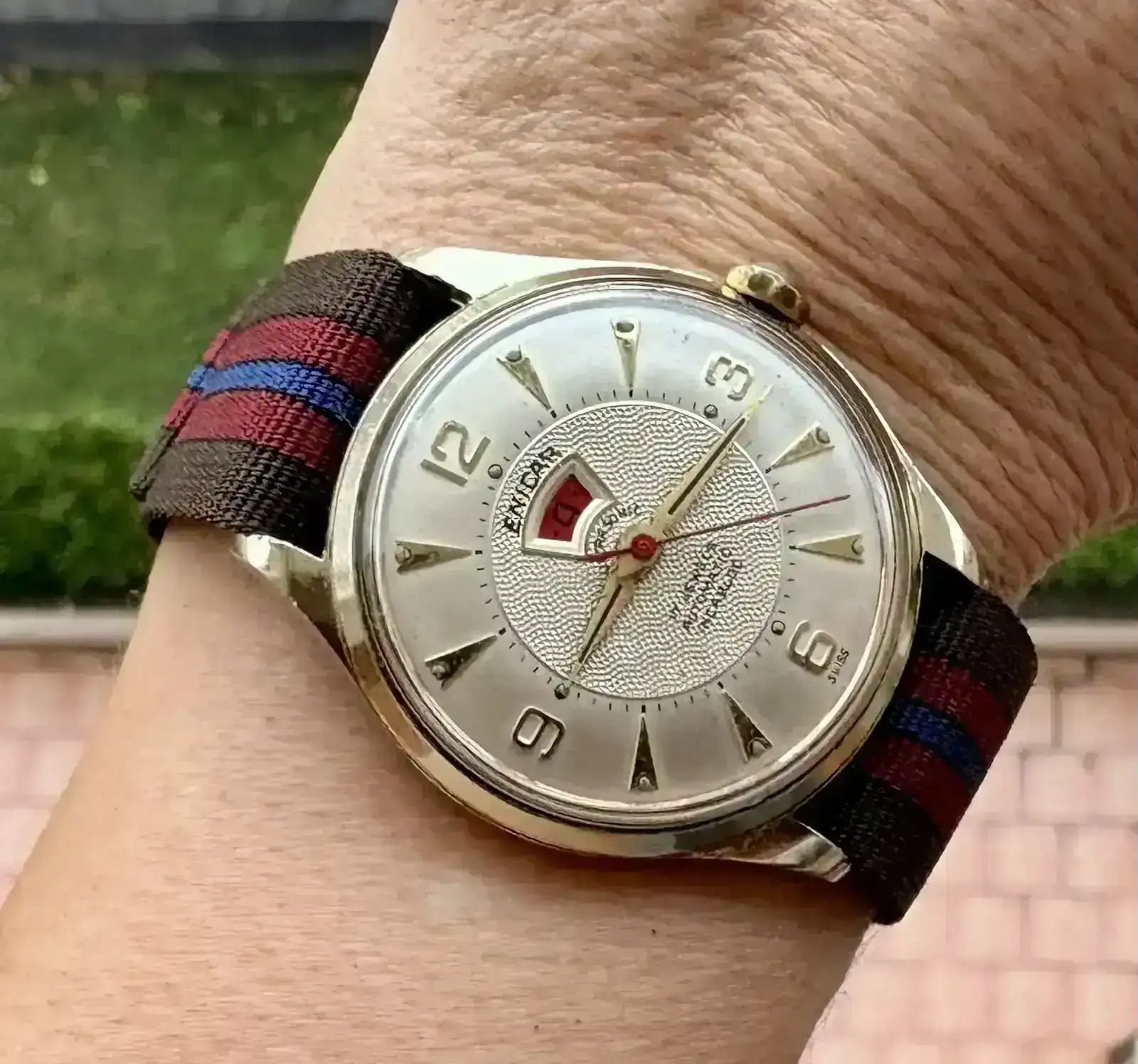 Jajaja... pues te agradezco la mención y siento que otra vez te haya causado un ataque de pelusitis mi humilde rayos de sol comparado con el tuyo, aunque me halaga. Le quedan de cine los colores de esa correa tipo nato a la esfera. Muy bonito!!¡Buenos días! Ayer le vi un hermoso texturizado radial de la marca al compañero @robmarsan y entró un ataque de pelusitis por la marca saturniana 😇 Además, llevaba tiempo sin sacar este bidynator con reserva de marcha, y me encanta el ventanuco, especialmente al inicio del día, en rojo 🙃