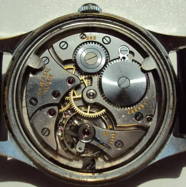 El Universal Geneve tiene la misma base FHF 26. No esta mal, pero no llega al UN. Faltan dos piedras de la rueda de ancora y el espiral Breguet.