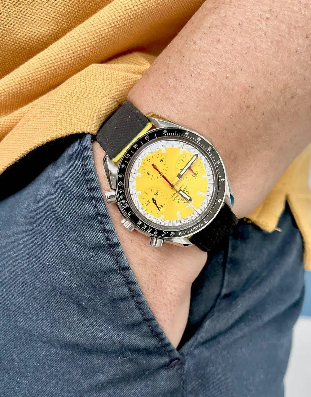 Un contraste muy bien calculado el de esa correa azul con el oro de la caja y el aro de los índices de este Polerouter de UG. Me encanta.