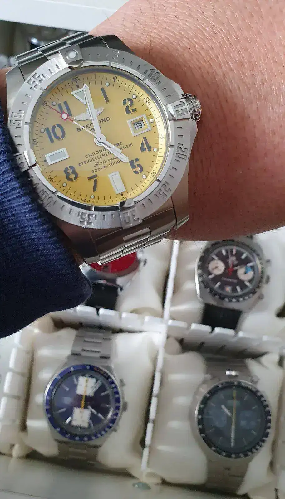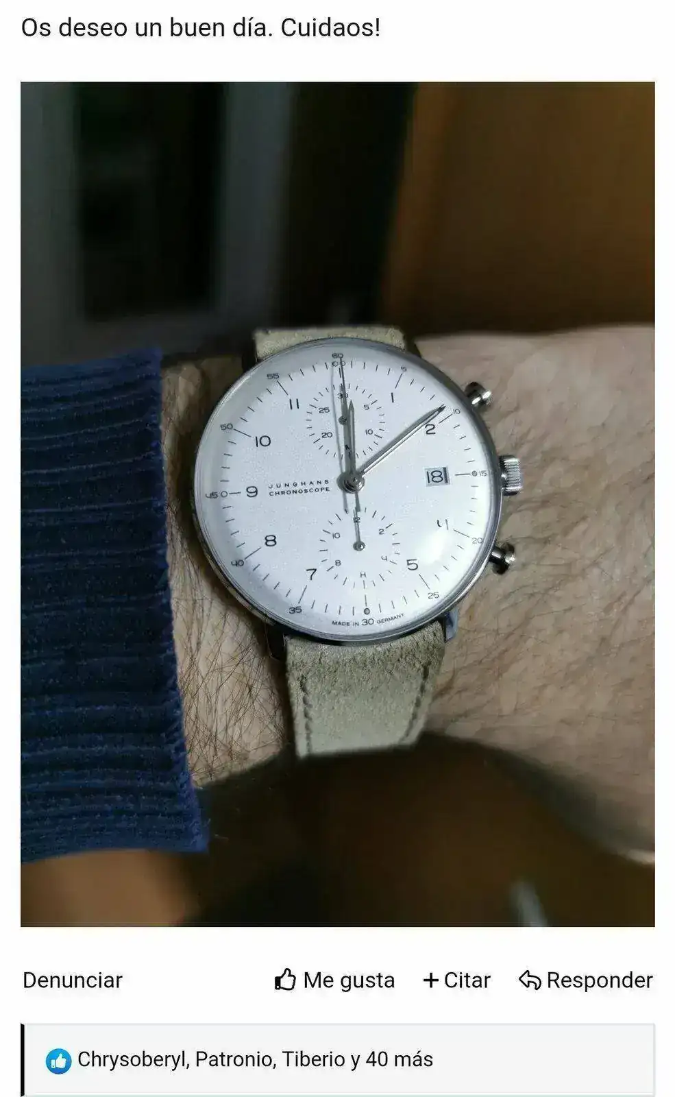 Pena. Muy grande para mi. Espero que pronto que tengo mono de quedadas...Gracias Javier. Un poco paella, pero me gusta, es de 44. Tuve la edición normal hace unos meses, esta es la tirada limitada con agujas y numerales en beige. "Tontaaas" de la afición. Cuidate, y a ver cuando podemos vernos en una de esas en Santander.