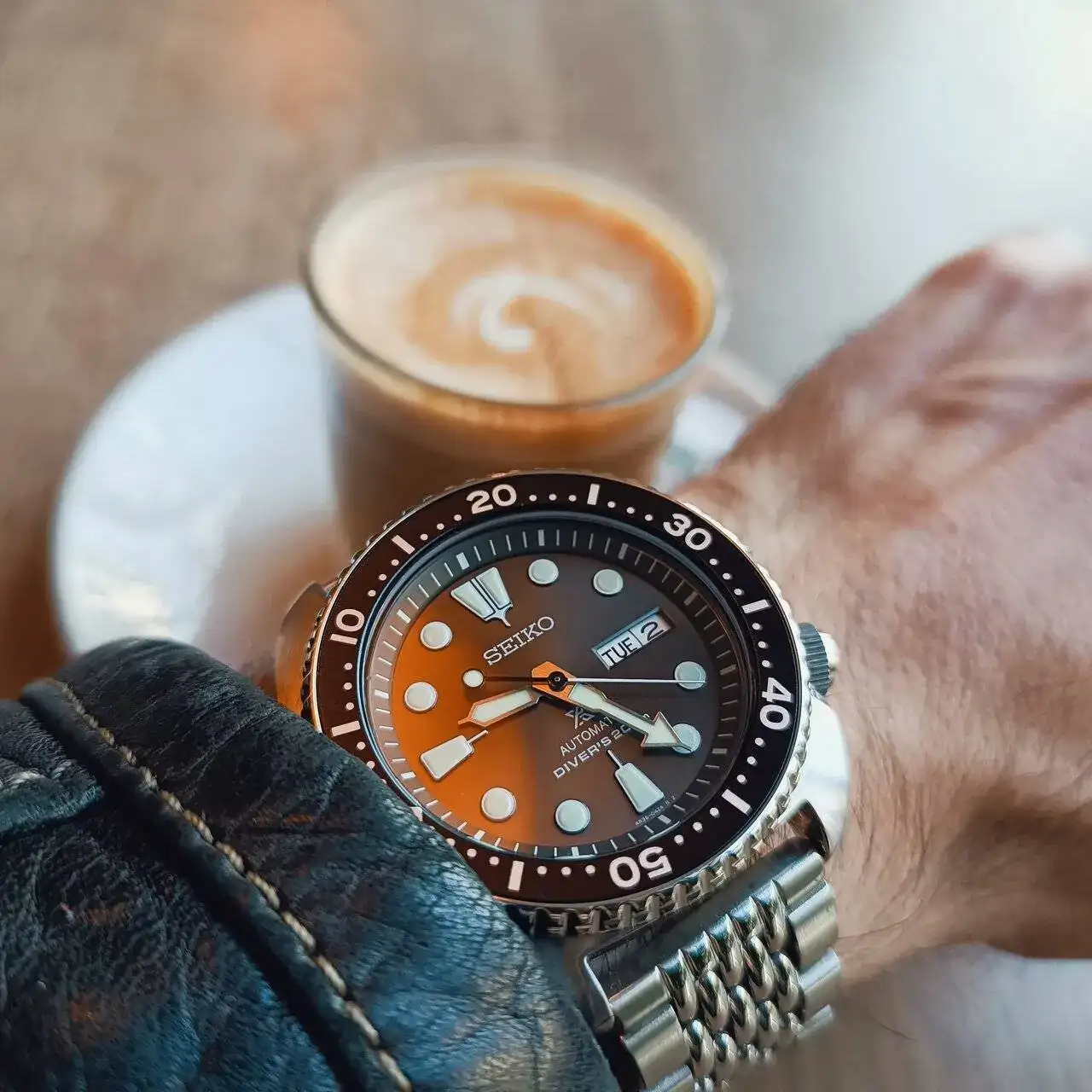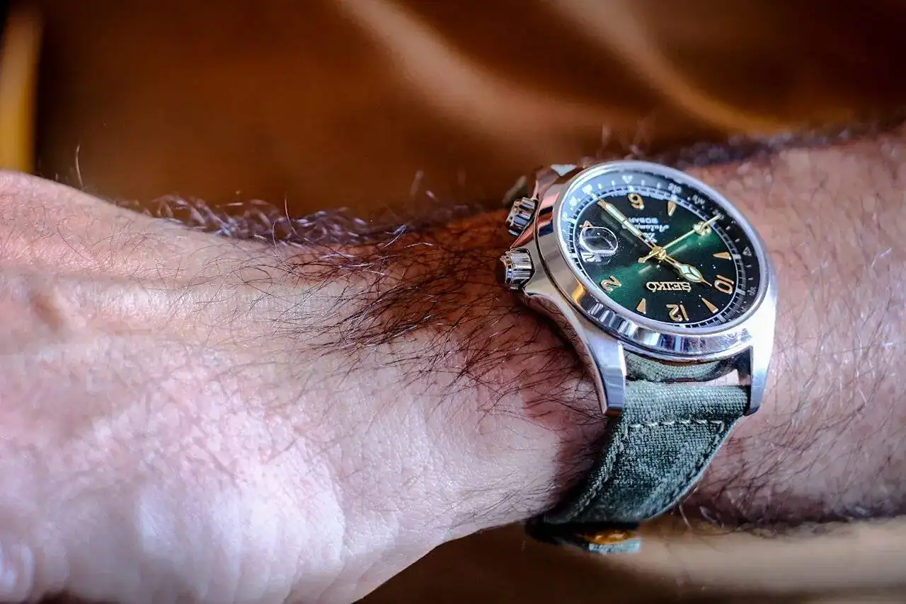 Muy contento con ella, además ma "envejeciendo" y le queda muy bien.Muy chula esa correa a juego con la esfera 👌