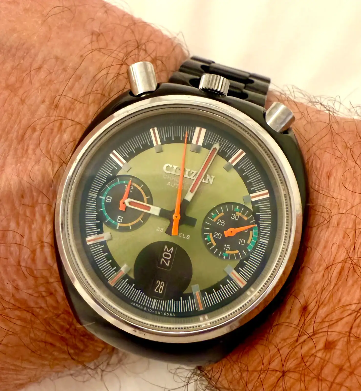 Que chulo compiBuen martes a todos!!! Citizen 4-901096 🥝 fecha enero del 1974. Original, adquirido en Japón, excepto la correa. La correa era de tipo tropic y es muy complicado conseguir una en condiciones de uso.