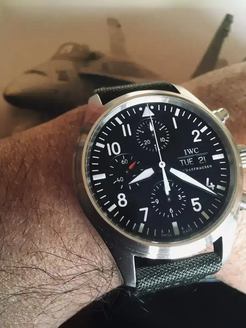 Deberían retirarte la licencia para pilotar el IWC, la aeronave de la foto es el (McDonell-Douglas, ahora Boeing) F-18 Hornet y no el (Grumman, ahora Northrop Grumman) F-14 Tomcat.