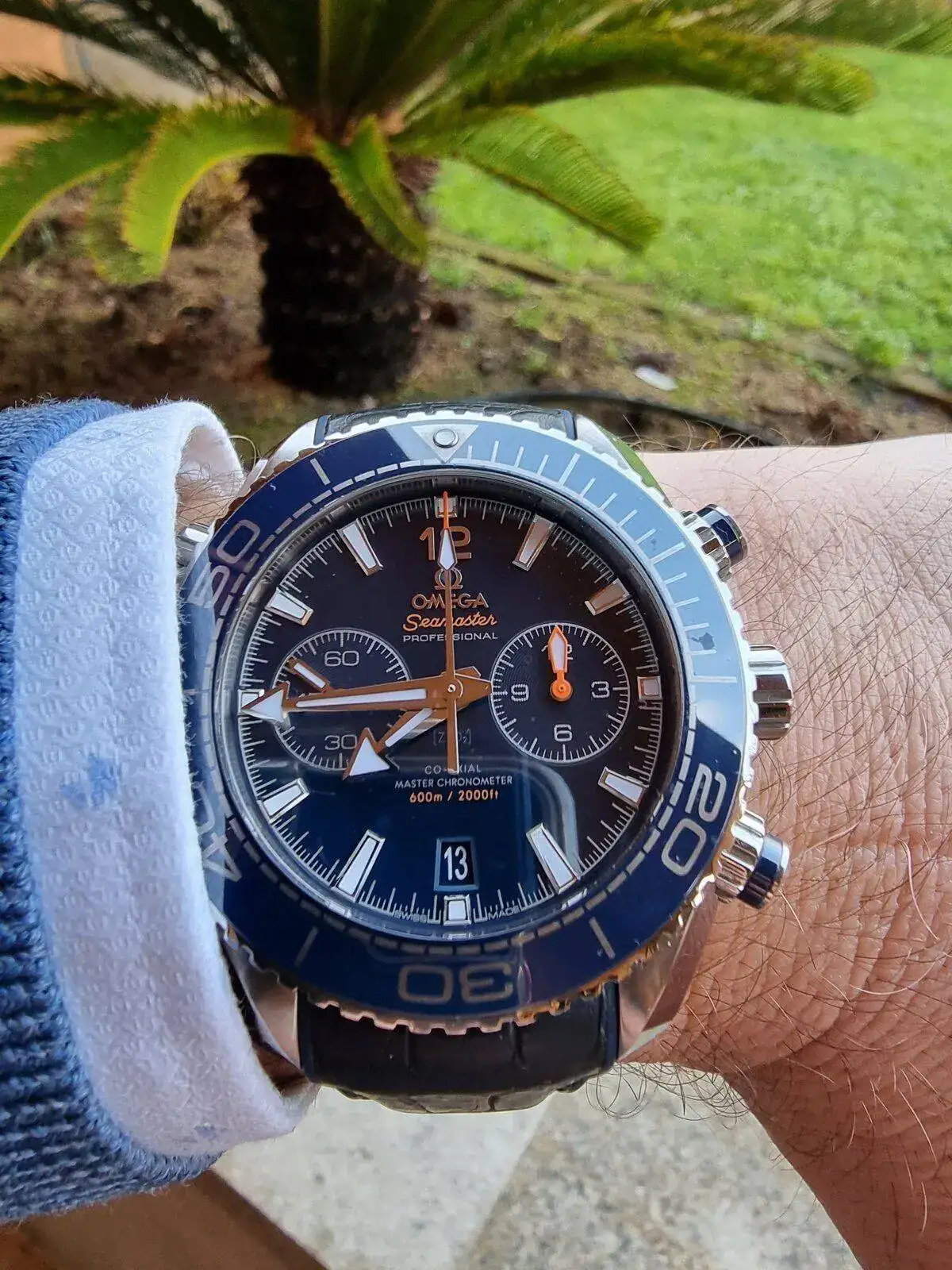 Qué bonito queda el azul en este Omega, y la combinación de colores, así como los pulsadores roscados y esa aguja de la subesfera !!.