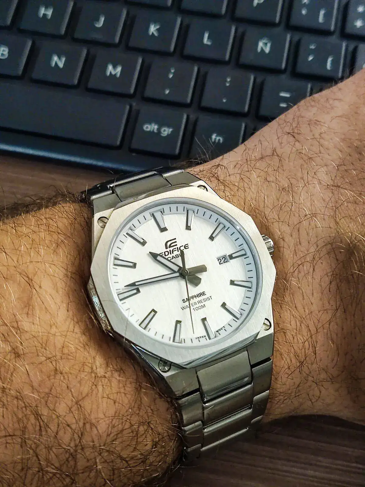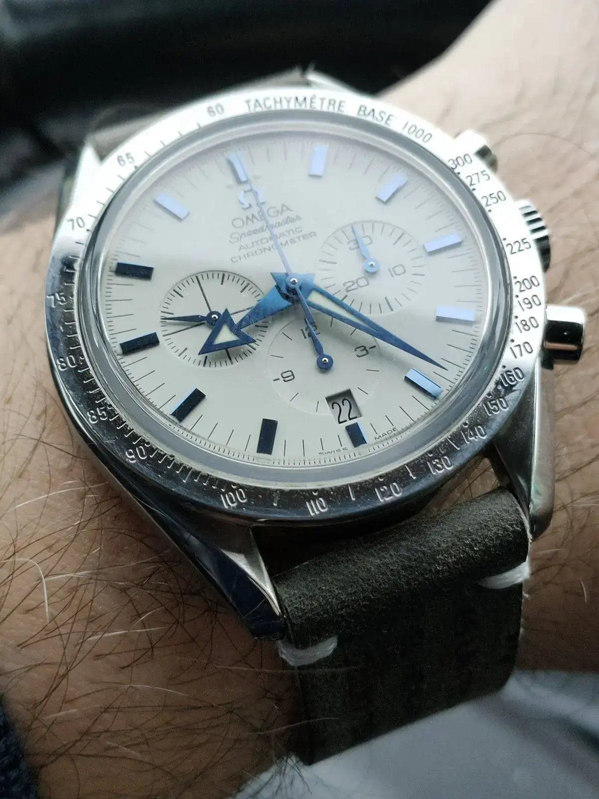 Siempre que veo esferas blancas con agujas azules, me gusta mucho como queda. Yo igual para este, probaría alguna correa azulita... (si no lo has hecho ya). Salud !Feliz speedy Tuesday.
