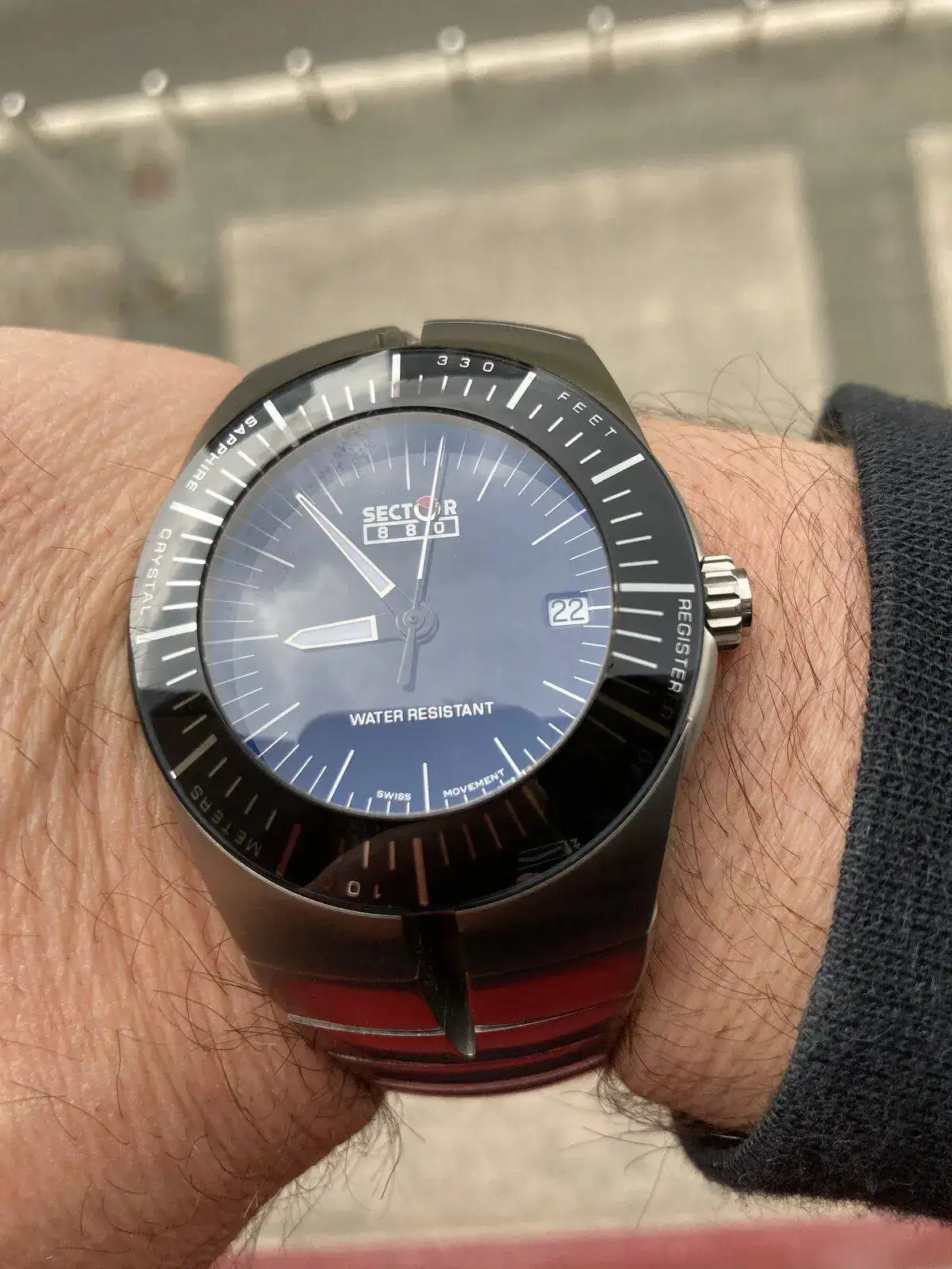 Bonito y original "Héctor" 🦾🦾Aeroespacial dia hoy en la Torre.Máxima intensidad pero bien equipado.Shappire dome crystal and shappire rotate bezel.Una leyenda irrepetible la 880 de Sector,no limts
