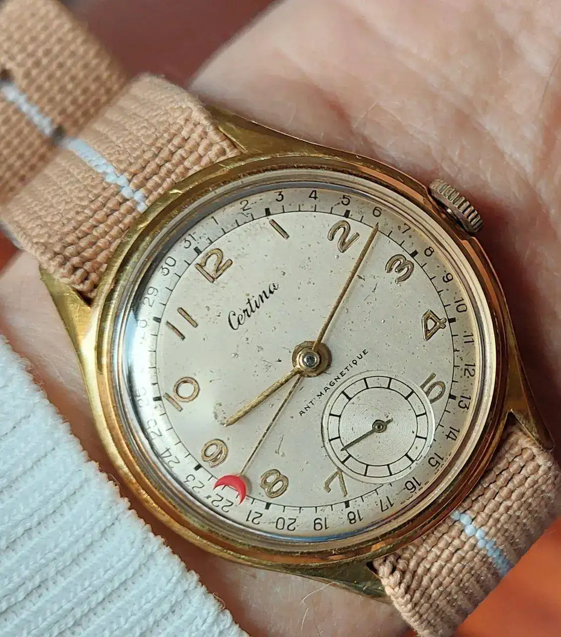 Graciasss, me alegra que te guste; tiene señales de batallas vividas, pero conserva su caracter vintage.Qué cosa más bonita de Certina. No me canso de mirarlo.![]()