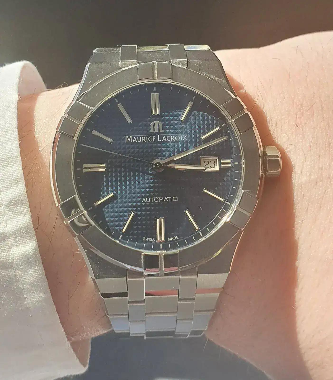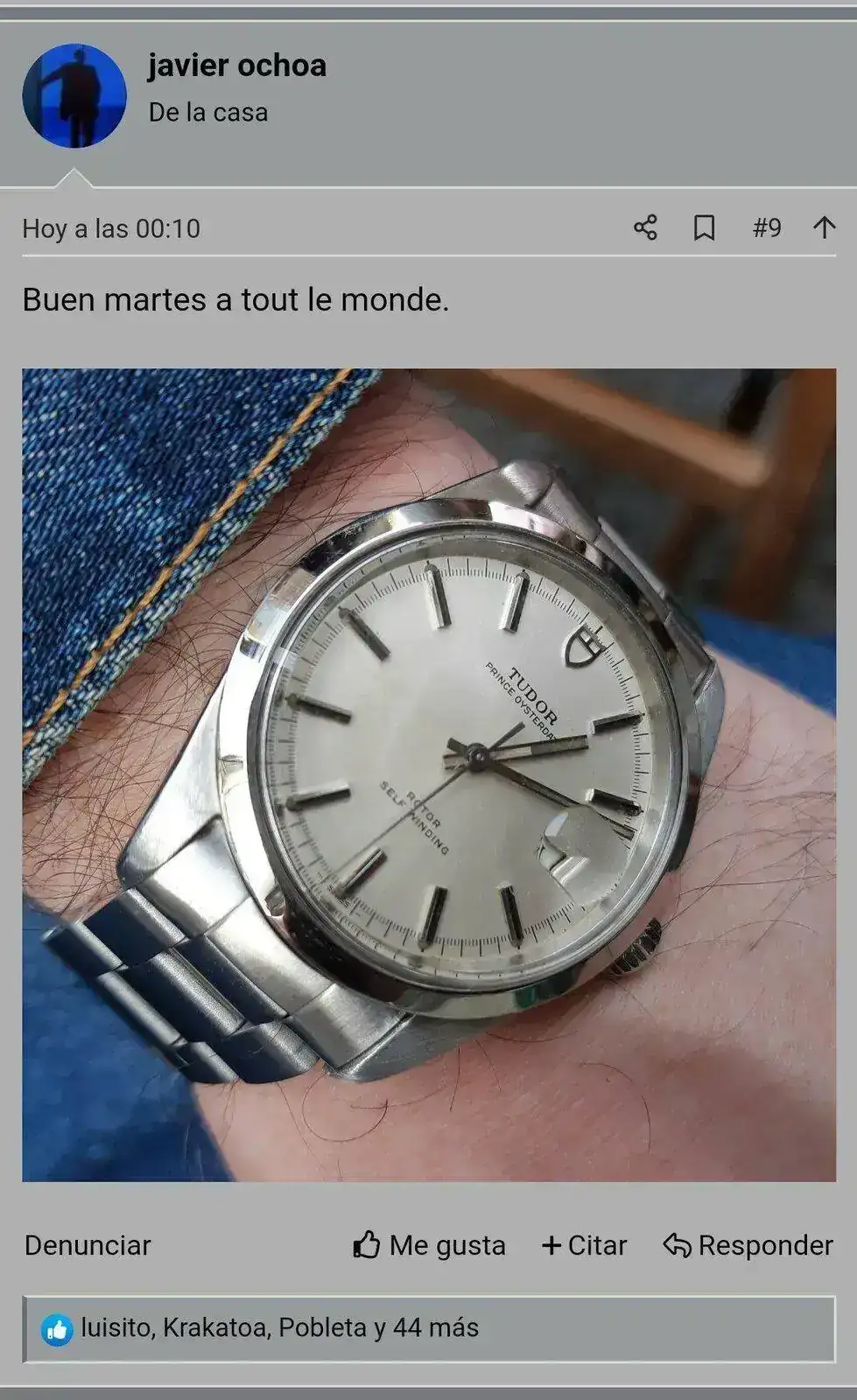 Muchas gracias!! creo que cada reloj tiene su correa, y si bien suelo ser de armis, este, al igual que un Pam por ejemplo, por impresionante que sea el armis, lo veo de correa... quizás por el contraste que hace un bisel titanio/acero respecto de una correa, lo cual no ejerce un brazalete?Gana mucho con el caucho!!! Te felicito