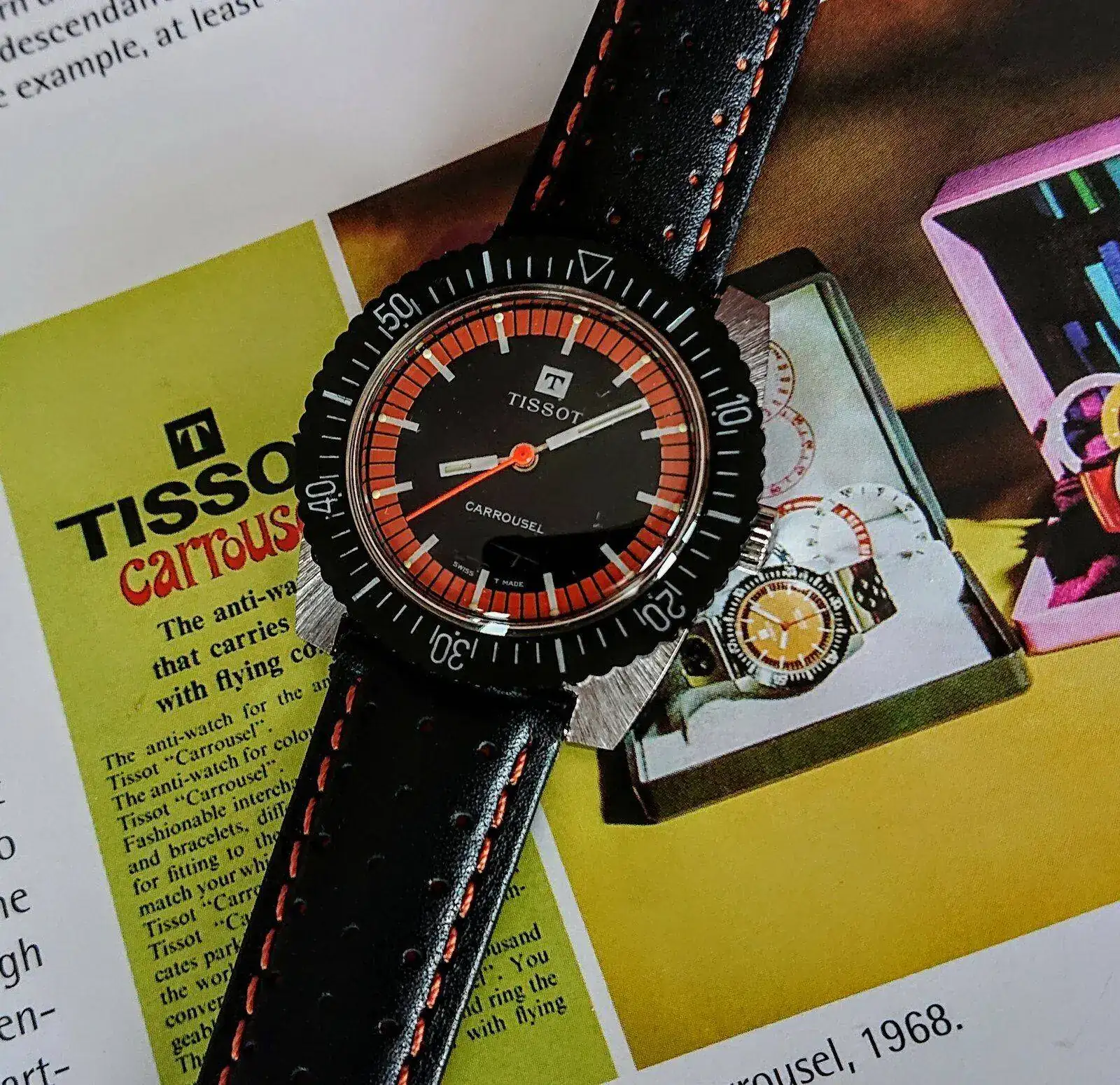que hermoso Tissot , cada vez que veo tus publicaciones mas ganas de tener una pieza de esos años me da, tienes que darme el dato como lo haces para conseguir esas bellezas, saludos!!jajaja, ya sabes, en los locos finales de los 60 la publi tenía que apelar a lo transgresor e inconformistaY sí, el cepillado de la caja es una gozada, a veces dan ganas de llevarlo sin los biseles, que tampoco se ve especialmente raro