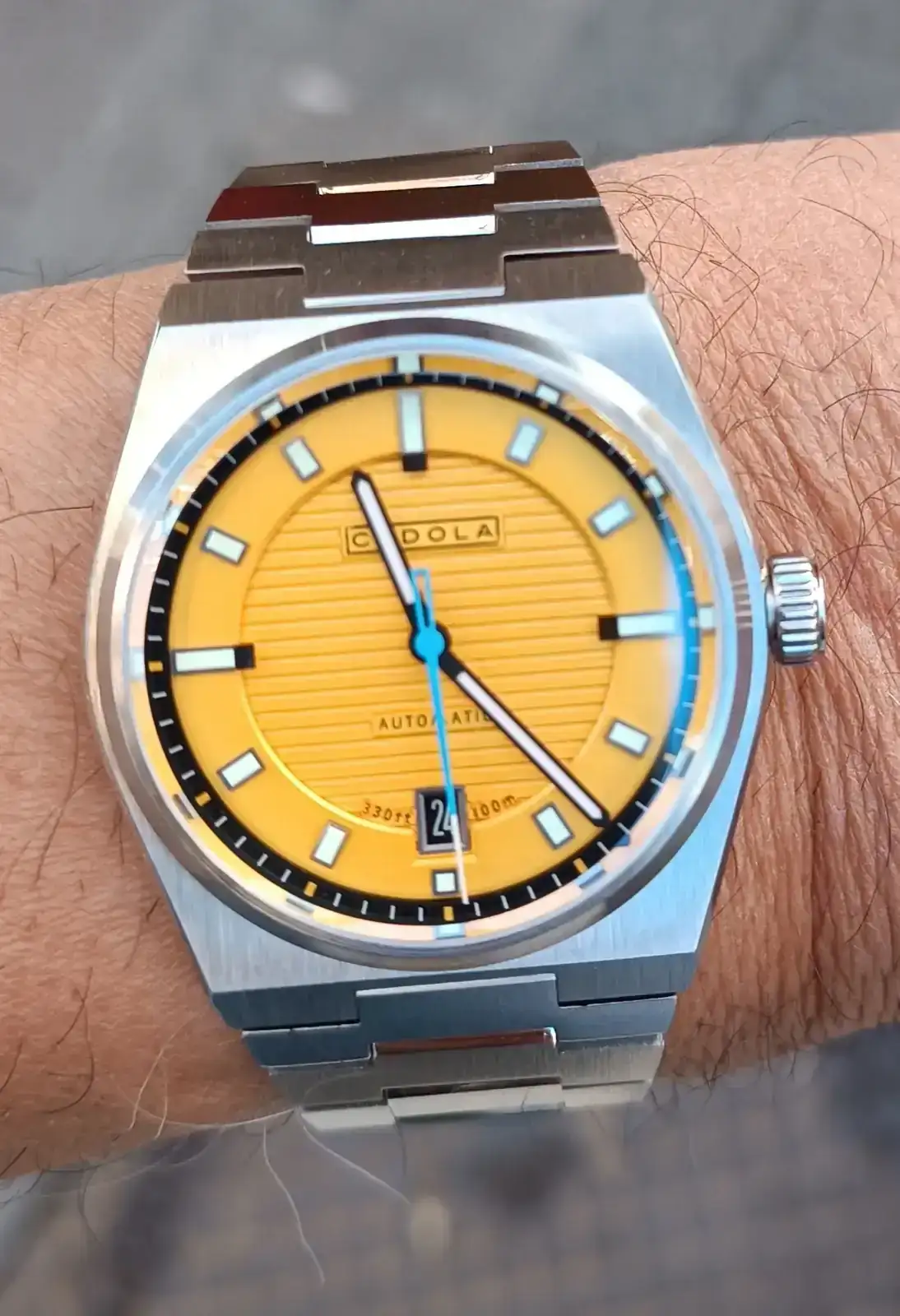 ¿y a quien se le ocurrió hace casi 100 años hacer unas asas así? la esfera sector dial es preciosa!!Esa correa le sienta de 10. Un saludo Rosa