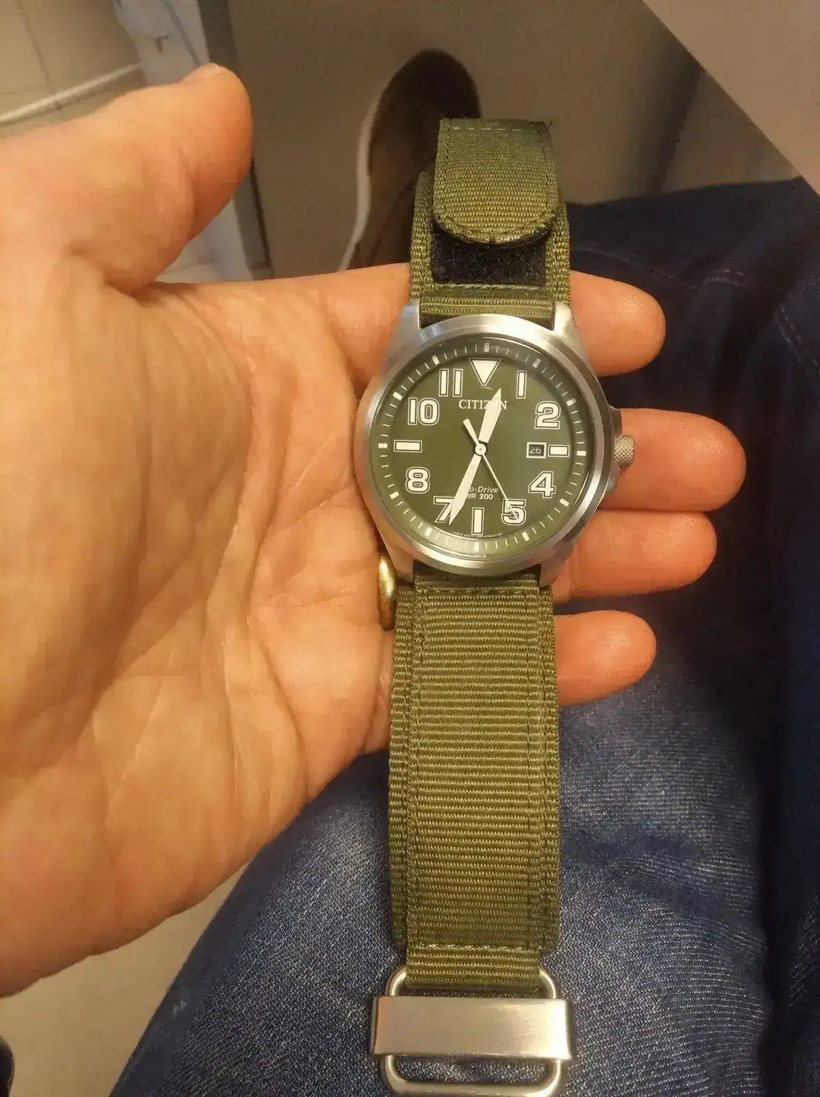 Hola, es una de AliExpress, "inspirada" en la Miltat de Strapcode, 13€ frente a unos 45 creo, y no está mal... Queda military total 👍Hola que correa más interesante es original de citizen? No la había visto nunca..........