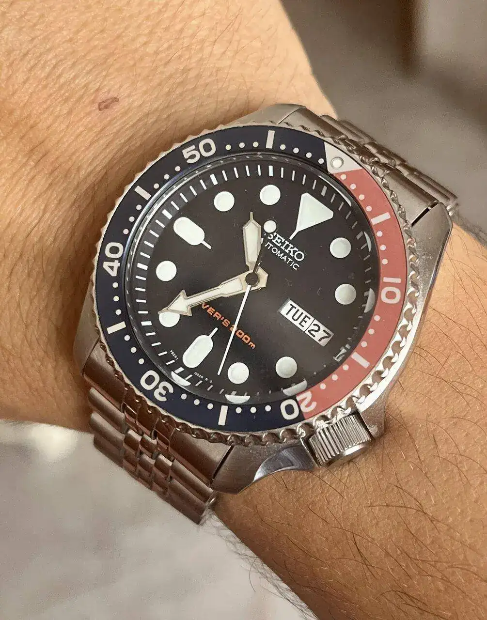Le da un aire a brazalete integrado, y siendo de 20mm hace que el reloj se lleve más grande que sus 36mm de diámetro de caja .