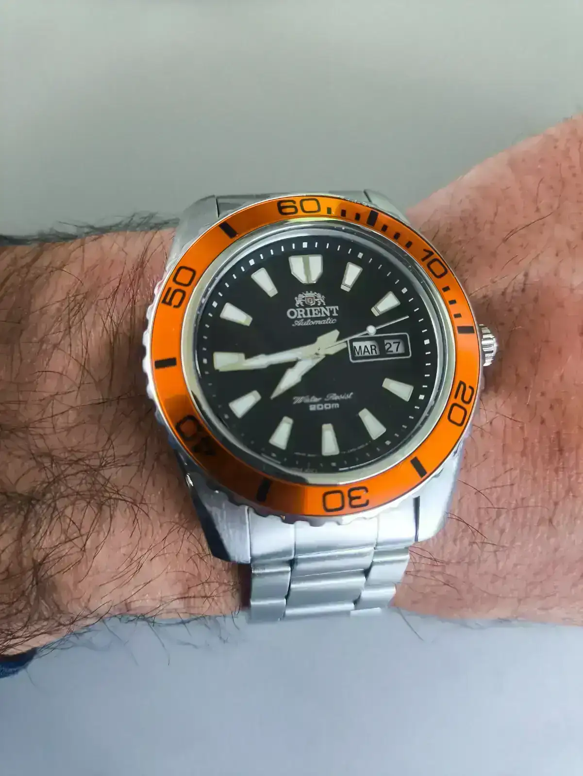 La verdad es fabuloso y más ligero de lo que aparenta. Tamaño 43mm el peso todo bien para mi…