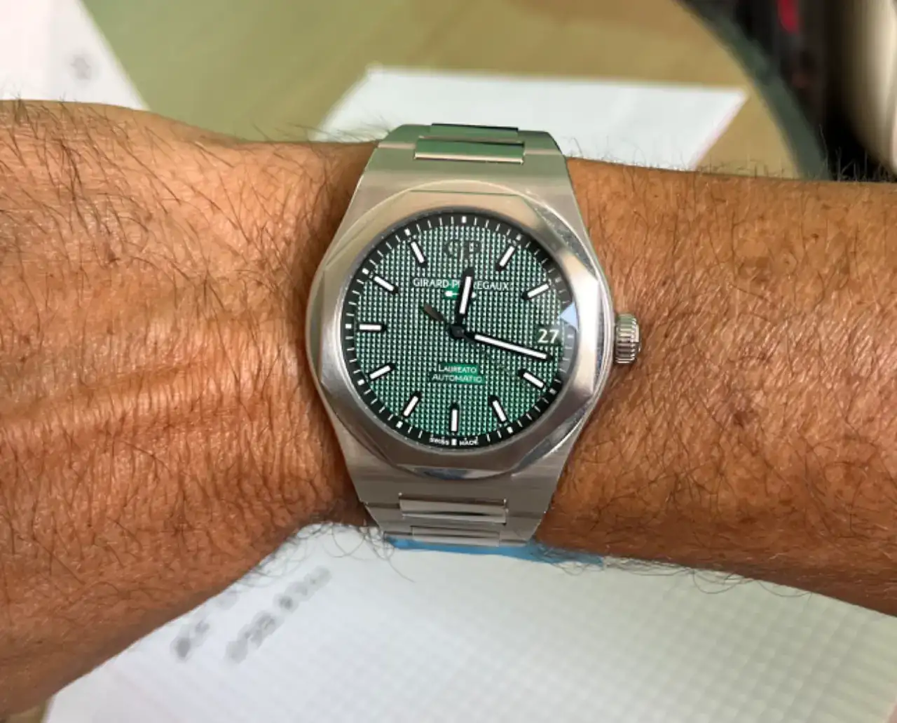 Me dejo de futuribles y disfruto de la última incorporación. Todavía dándole vueltas si debería haber elegido la esfera azul pero la de este verde, y las distintas coloraciones que adopta, me parece tremenda; mejor al natural que en fotografías.