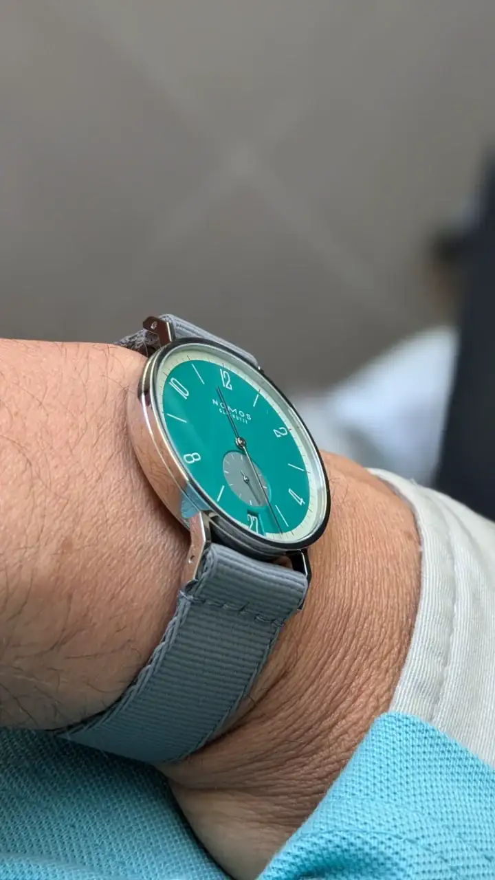 Me dejo de futuribles y disfruto de la última incorporación. Todavía dándole vueltas si debería haber elegido la esfera azul pero la de este verde, y las distintas coloraciones que adopta, me parece tremenda; mejor al natural que en fotografías.