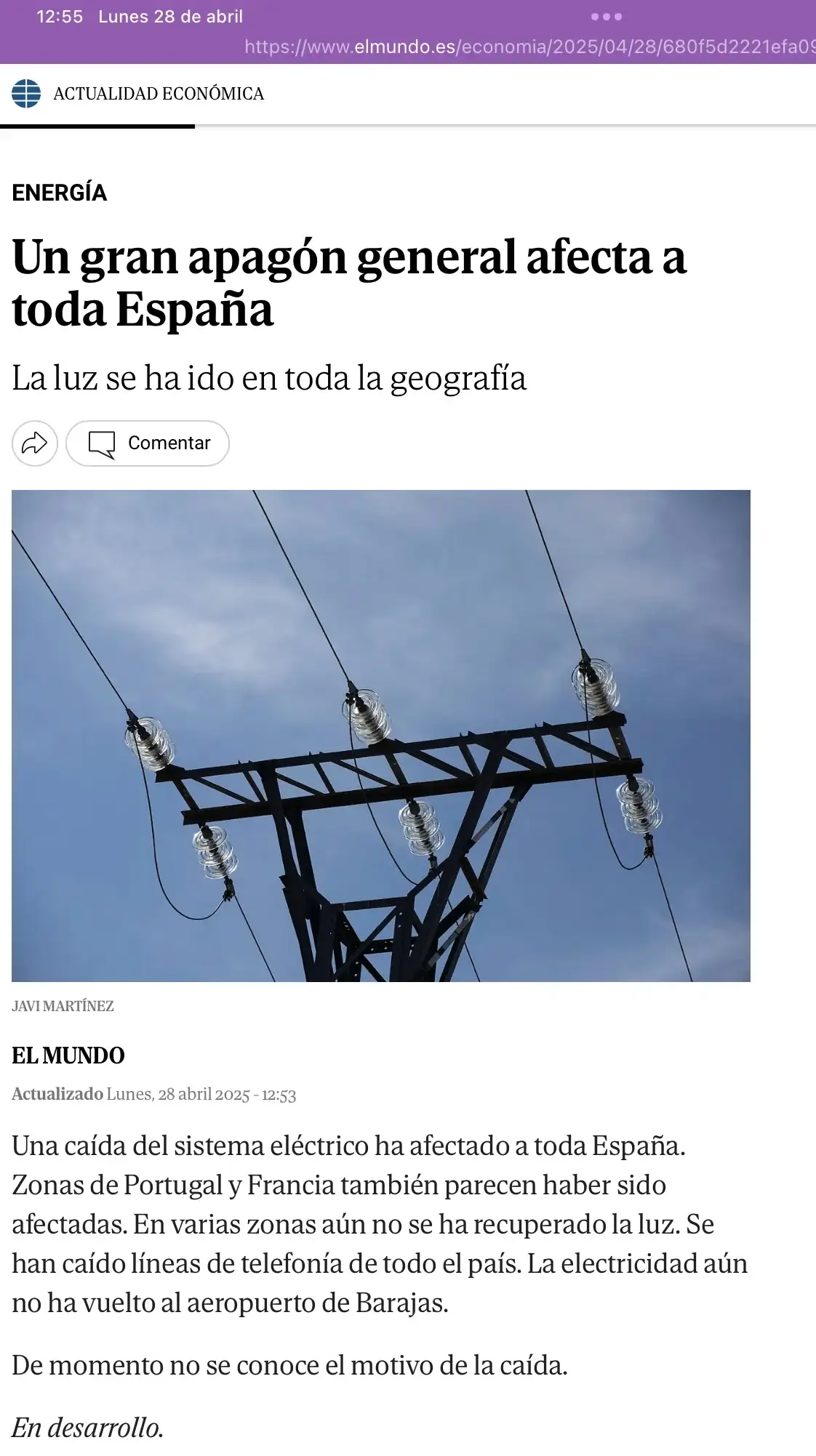 Fui becario de informática en Endesa, sé lo justo de como funcionan, pero lo suficiente como para saber que la luz no iba a volver en horas si no eran días. Tenemos un protocolo en casa para esto, mi mujer me espera donde esté (trabajo) salvo que tenga que huir, en cuyo caso tenemos varios puntos de encuentro donde ir a buscarla.