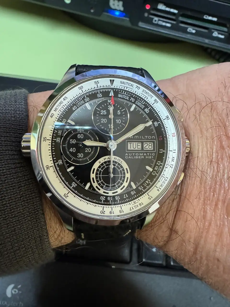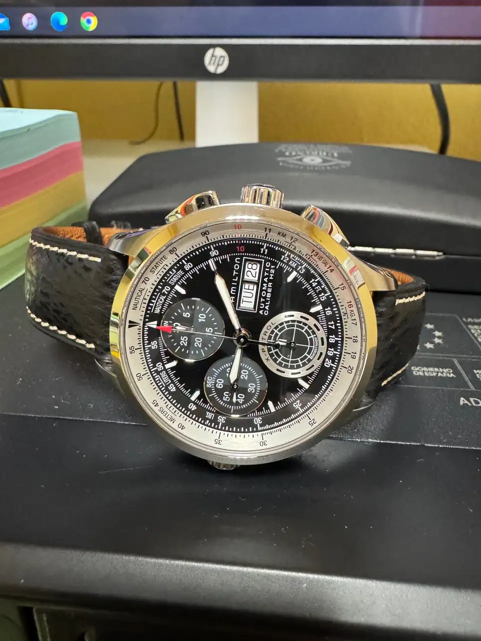 Hoy le toca a este Hamilton. Le he cambiado la correa original por esta de tiburón negra con pespunte blanco.Ver el archivos adjunto 2989349Ver el archivos adjunto 2989350Ver el archivos adjunto 2989351