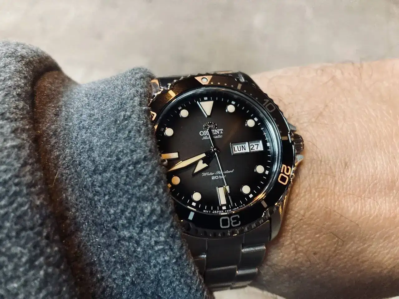 Mi mayor al enseñárselo va y me dice que parecía que la esfera estaba con niebla, así que ya tiene mote. Os presento al Nublado, un Orient Kamasu II con la esfera gris en degradado y los índices aplicados que me ha enamorado completamente.
