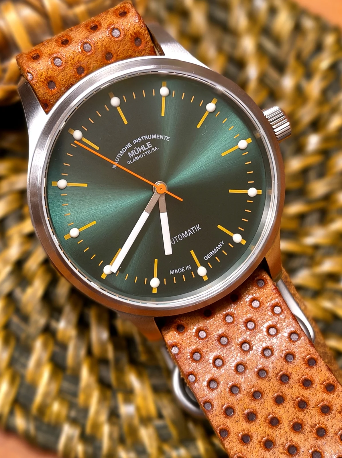 Muchas gracias, coge muchas tonalidades de verde según la luz.Que bonito con ese color de esfera,, muy guapo