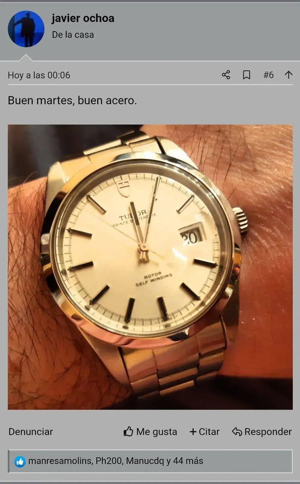 Muchas gracias. Hace tiempo que le tenía echado el ojo pero como he cerrado la caja... Pero al final me lo regalaron mis hijas para el Día del Padre. La visibilidad es mejor de lo que parece. Desde luego es un reloj que no pasa desapercibido, del estilo de los que me gustan para ciertas ocasiones desenfadadas de primavera y verano.