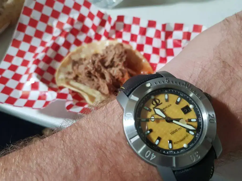 Este reloj se va a su caja después de todo el día de parranda