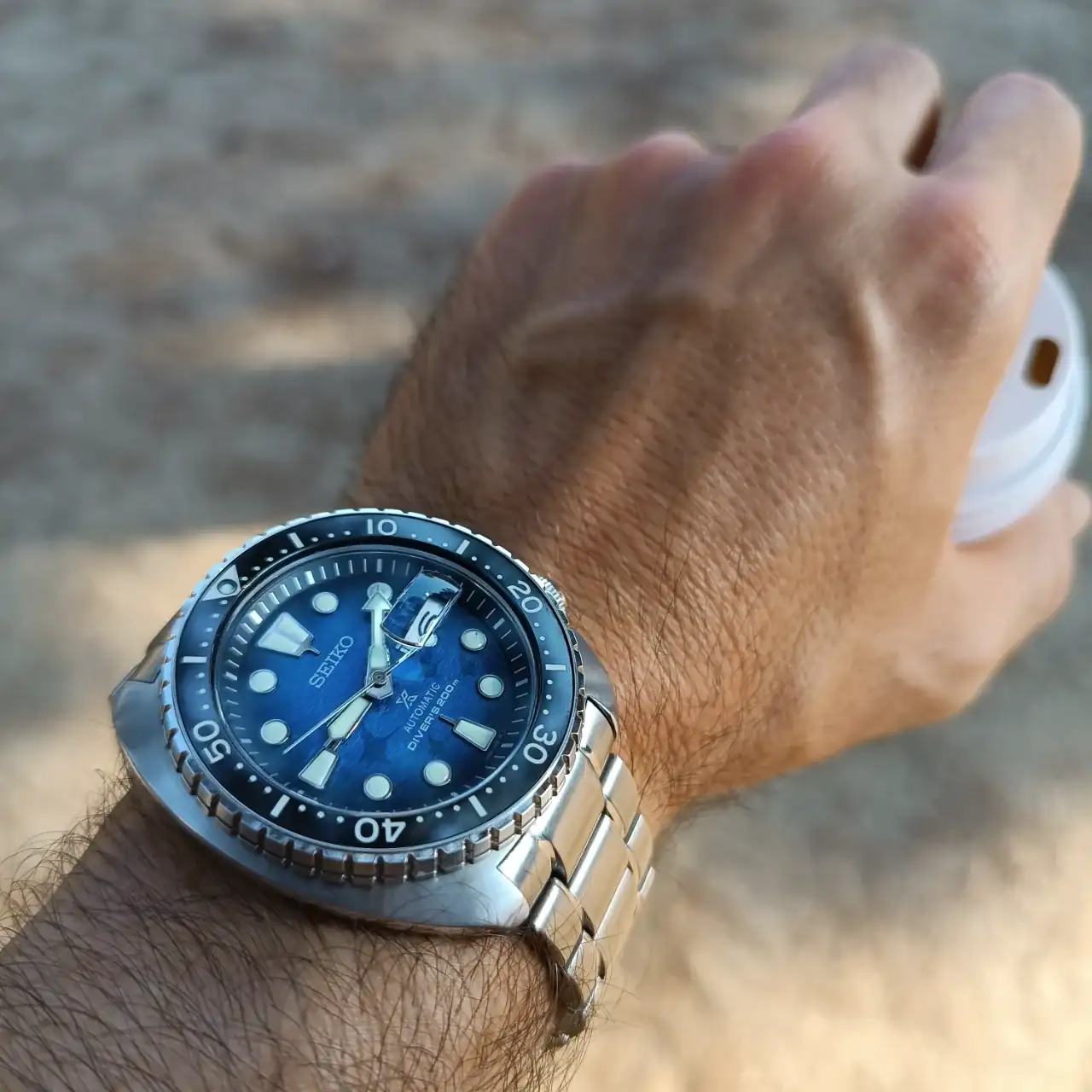 Que reloj más bonito, esta esfera !, lo tengo igual, lo compré hace un par de meses.Ya lo pone en la tapa del vaso: "CAUTION HOT"