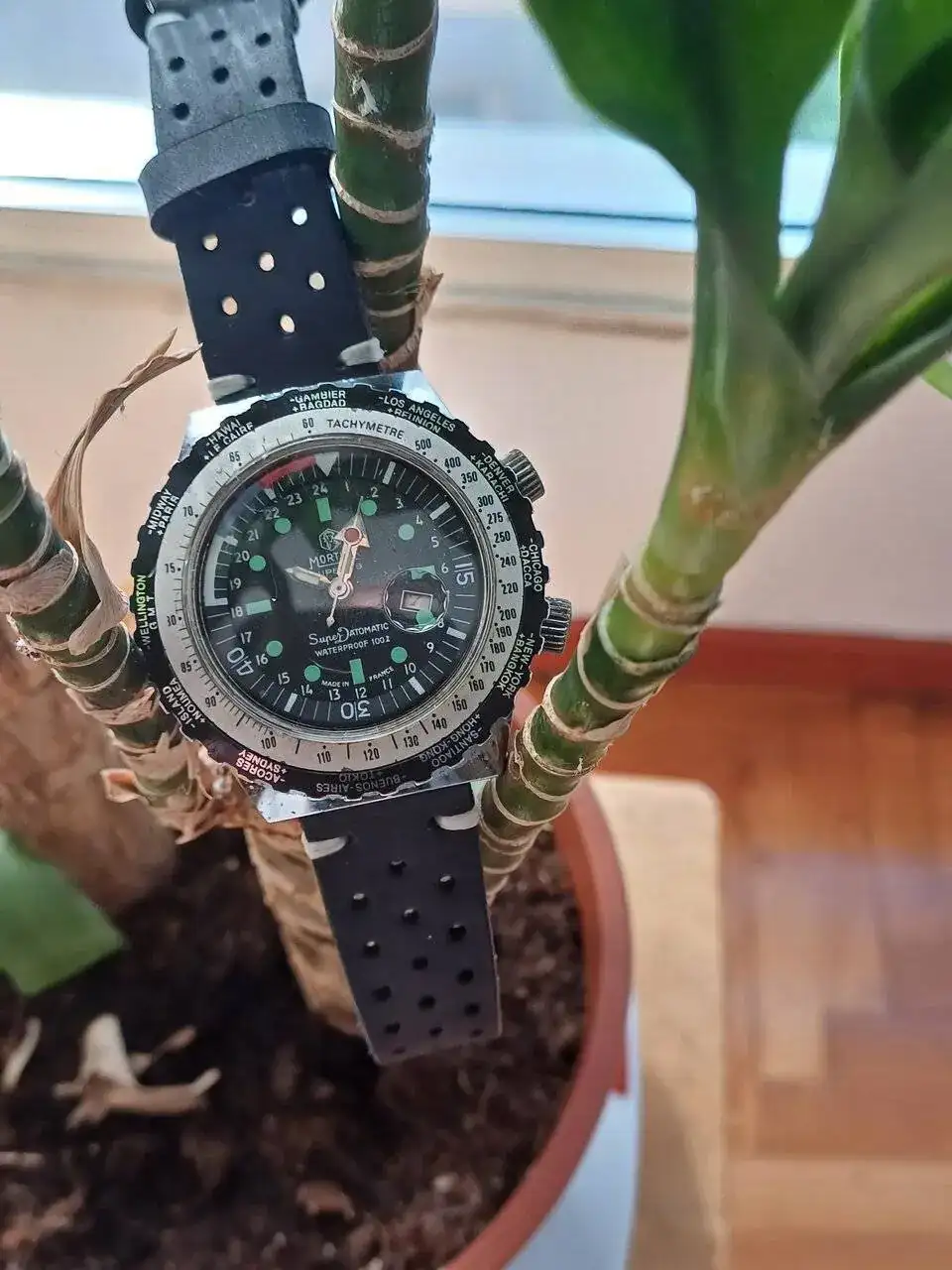 Por cierto le cambié la correa de caucho negra por una de color verde haciendo juego con el dial y el bisel.