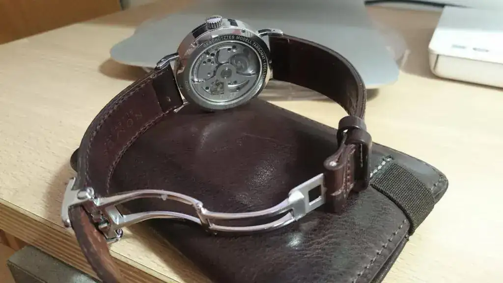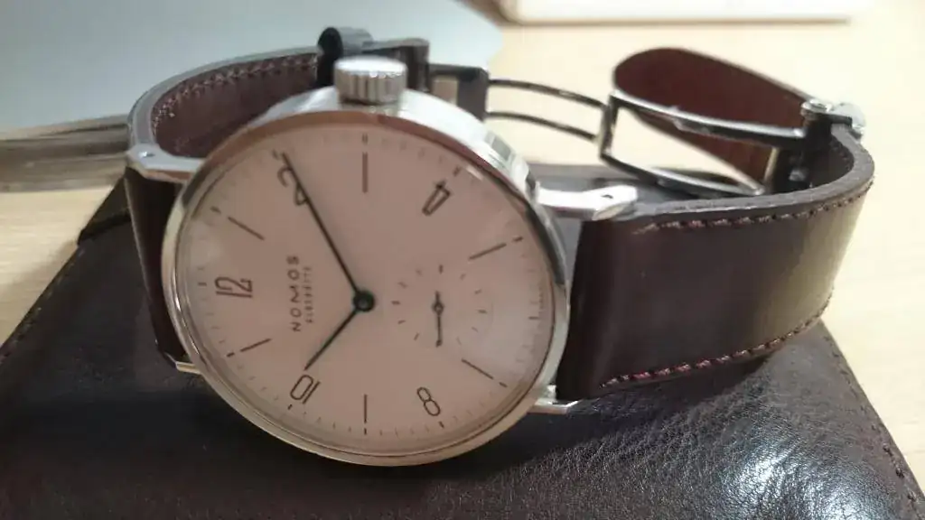Un reloj precioso, y la correa es magnífica. Parece una Horween Cordovan. EnhorabuenaPilotare el dia con mi machote tangomat y mas con su deployante, que lo recibí hace poco. Ahora al ponérmelo y quitármelo no hago tanta posturita, queda de miedo y da seguridad.