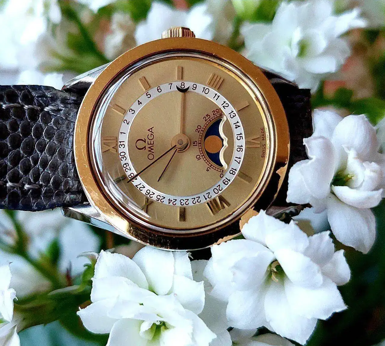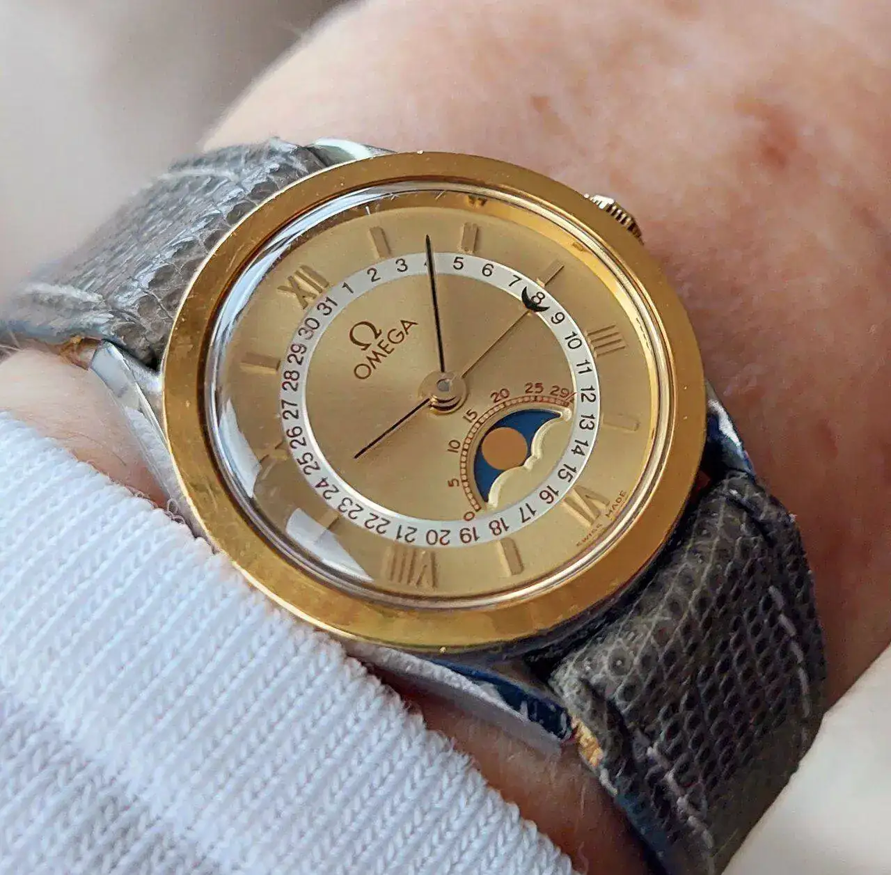 Muchas gracias. La correa de cocodrilo marrón es un clásico para el Speedmaster 😊A este bicho le queda bien cualquier correa