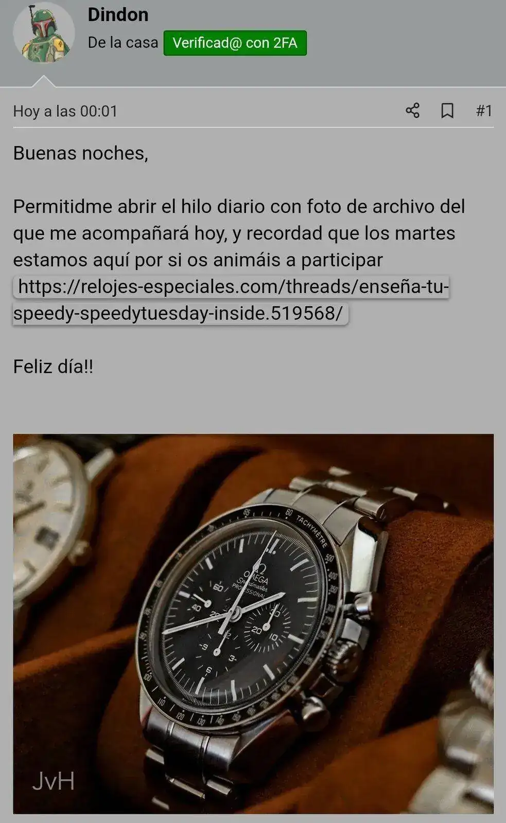 • El foro de relojes de habla hispana con más tráfico de la Red, donde un reloj es algo más que un objeto que da la hora. Relojes Especiales es el punto de referencia para hablar de relojes de todas las marcas, desde Rolex hasta Seiko, alta relojería, relojes de pulsera y de bolsillo, relojería gruesa y vintages, pero también de estilográficas. Además, disponemos de un foro de compraventa donde podrás encontrar el reloj que buscas al mejor precio. Para poder participar tendrás que registrarte.