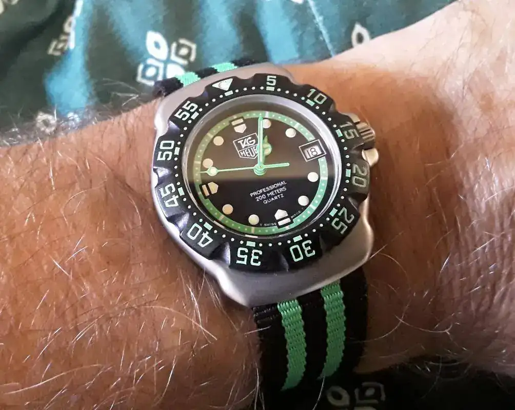 Eso es porque eres joven: yo lo pillé ya con cuarenta tacos, pero también me trae muy buenos recuerdos. Hemos buceado juntos, hemos hecho windsurf, vela, montañismo, viajes en moto...Ese modelo de Tag por dios me has llevado de viaje por mi adolescencia,te felicito por ese reloj me encanta la nato que le has puesto,saludos compañero!!!