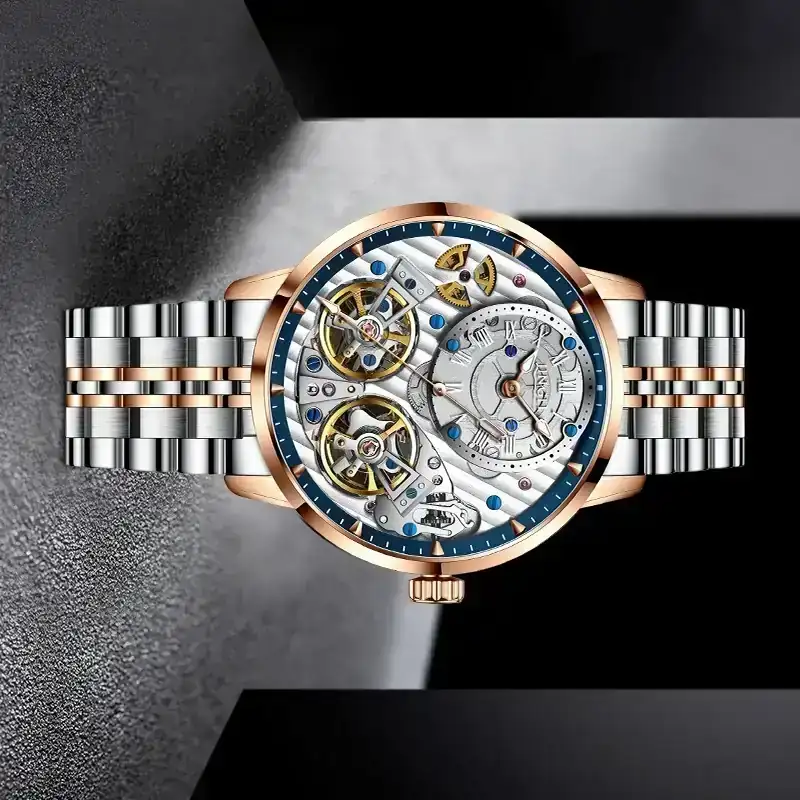 Como veis es el doble escape de aliexpress pero girado con la corona a las 6, posición completamente absurda e incómoda, pero que entre eso y ponerle un subdial al segundero central para que parezca un small seconds, hace pensar que es un movimiento distinto o complicado. Decir también que en ese movimiento sólo uno de los escapes regula la marcha, el otro es meramente cosmético, funciona visualmente pero no regula nada.