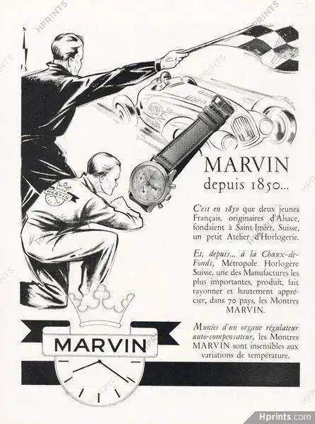 Con una instalación de vanguardia, y el uso de patrocinio de deportes de motor, distribución internacional y respaldo de celebridades, Marvin se convirtió en una marca de relojes bien establecida en las décadas centrales del siglo 20, también suministrando movimientos a otras compañías de relojes. El punto culminante de Marvin se produjo en los años 1950 y 1960, al final de los cuales la empresa había producido unos 7 millones de relojes durante su vida. Desgraciadamente, Marvin se convertiría en una de las víctimas de la crisis del cuarzo y en 1970, la empresa se convirtió en parte del grupo MSR (Manufactures d'Horlogerie Suisses Reunies), y posteriormente desapareció como marca, aunque con algunas ofertas en las décadas de 1980 y 1990, cuando las fabricas fueron absorbidas por MSR.