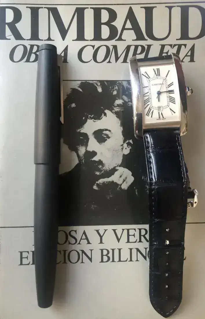 Precioso el conjunto y muy apropiada la Kaweco para ese cuaderno de viaje.Hoy quiero poner por aquí unas imágenes de un reloj y una pluma que ya os he enseñado alguna vez. En esta ocasión quiero mostrarlos acompañados de un cuaderno de viaje. Hace ya tiempo que quería tener algo así y además ha sido un regalo de mi mujer ( lo que lo hace aún más especial para mí ).