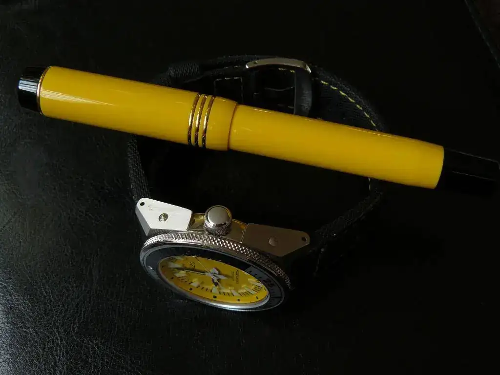 Totalmente de acuerdo. La Checkered que más me gusta es la oliva.Si señor, la edición especial de 1995, de las Duofold modernas más bonitas. También sacaron la Cloisonné en amarillo, pero me gustó más la Mandarín.. Otra variante amarilla es la Check Citrine, pero si pones las dos juntas en calidad de materiales gana por goleada la Mandarin…