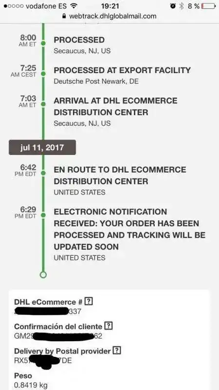 Como novedad, con un par de semana de retraso frente a un envío DHL-Correos me ha llegado el chrono mediante DHL-DHL