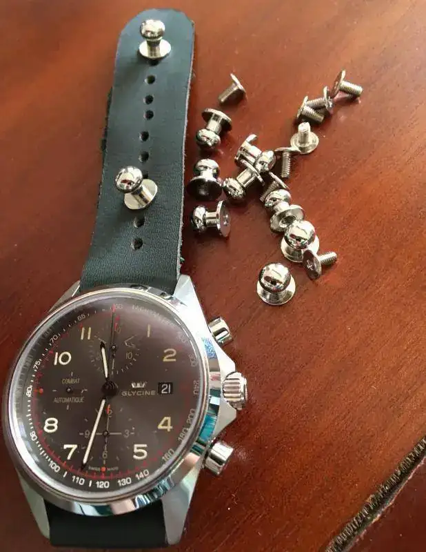 Ya llegaron de oriente los remaches... podéis buscarlos si os interesan por "leather buttom", así facilita mucho realizar correas caseras: