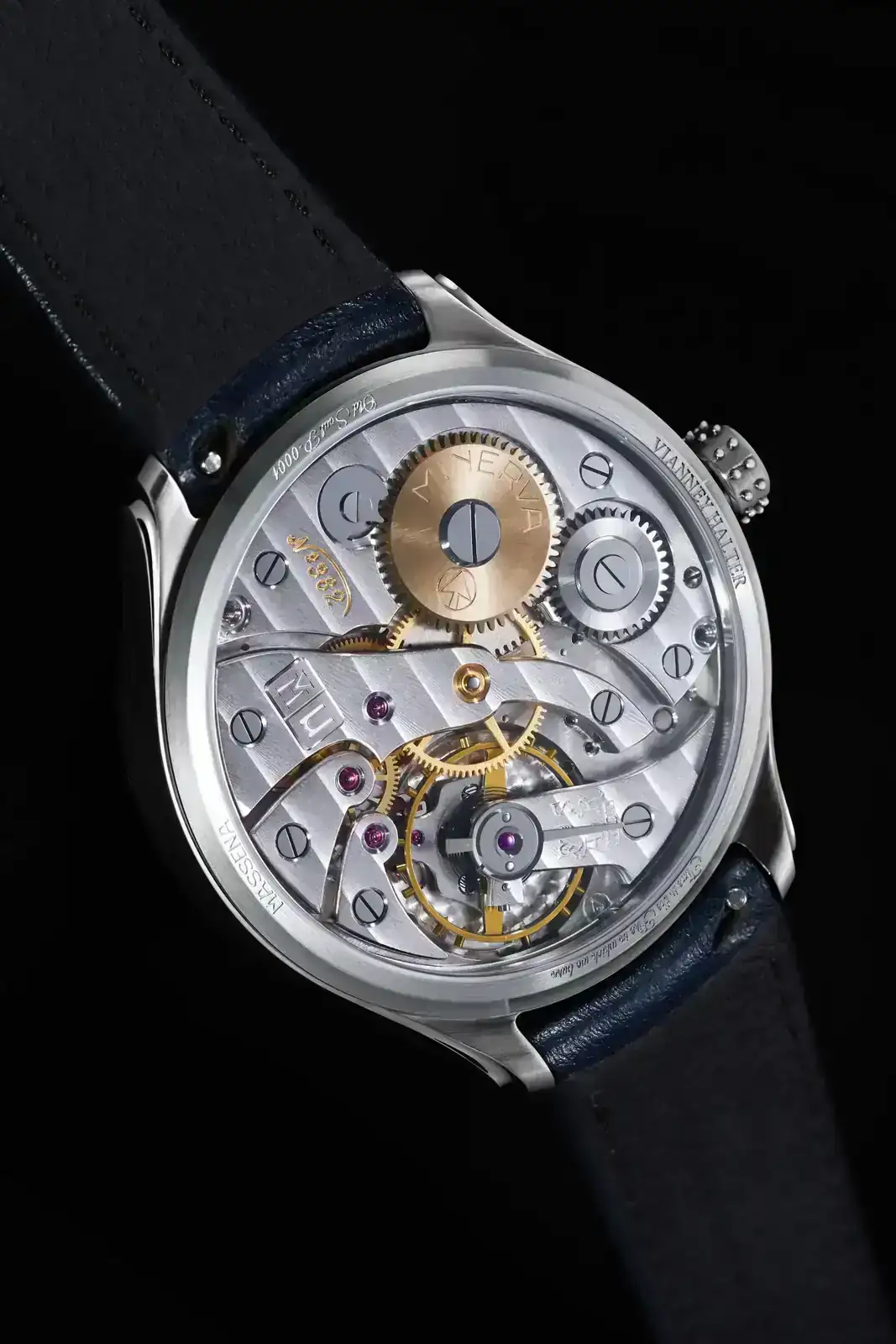 El reloj está basado en el calibre Minerva 17.22, una cantidad limitada en estado NOS fue encontrada por William Massena. Desarrollado y fabricado a principios de los años 20 y utilizado en relojes de bolsillo hasta 1942, el calibre 17.22 tiene un diámetro de 39,25 mm, disposición clásica con 17 rubíes, con un puente central en forma de guitarra, incluye un volante de tornillo que funciona a una frecuencia de 18,000 alternancias por hora y está equipado con un espiral Breguet.
