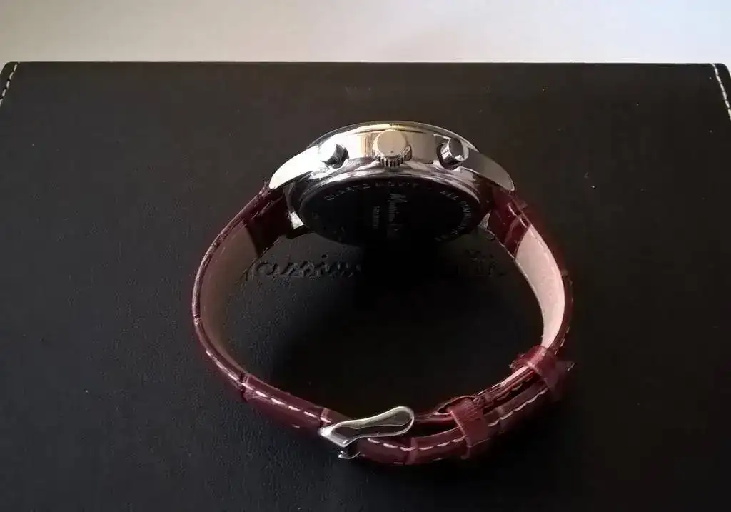 Sobre el movimiento, aparte de que es de cuarzo, no tengo información (tengo mi teoría, si alguien la quiere saber, estoy a su disposición). La correa que lleva instalada es de baja calidad, da el pego y tiene una hebilla similar a la correa original, con lo que permite disfrutar del reloj desde el primer momento.