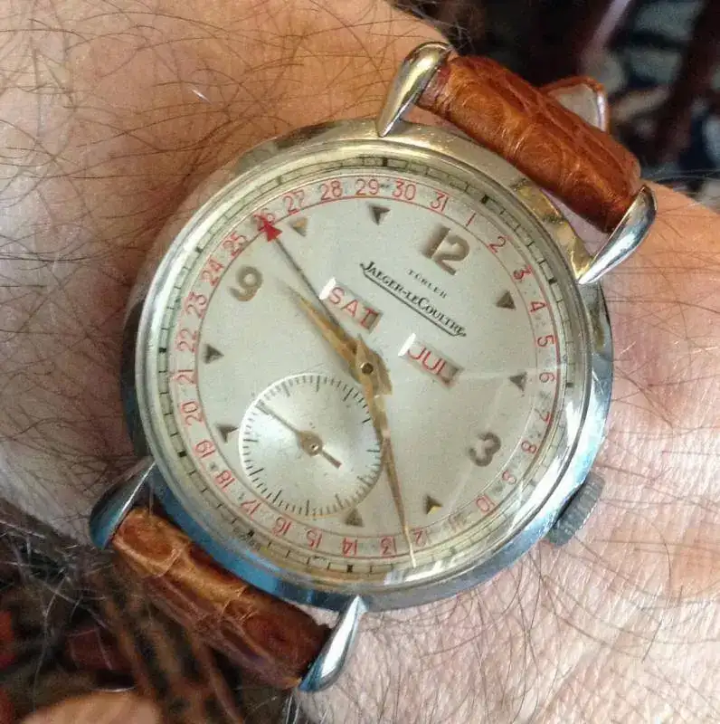 El Master Calendar de cuadrante plateado es un reloj muy bonito, pero carece de la marca de los minutos, supongo que porque se superpondría con la del número del día y eso afectaría la estética del reloj. Por lo tanto, para ponerlo en hora con exactitud habría que esperar a que las agujas lleguen a la marca de los cinco minutos (Por supuesto que otro tanto ocurre con el modelo de dial meteorito).