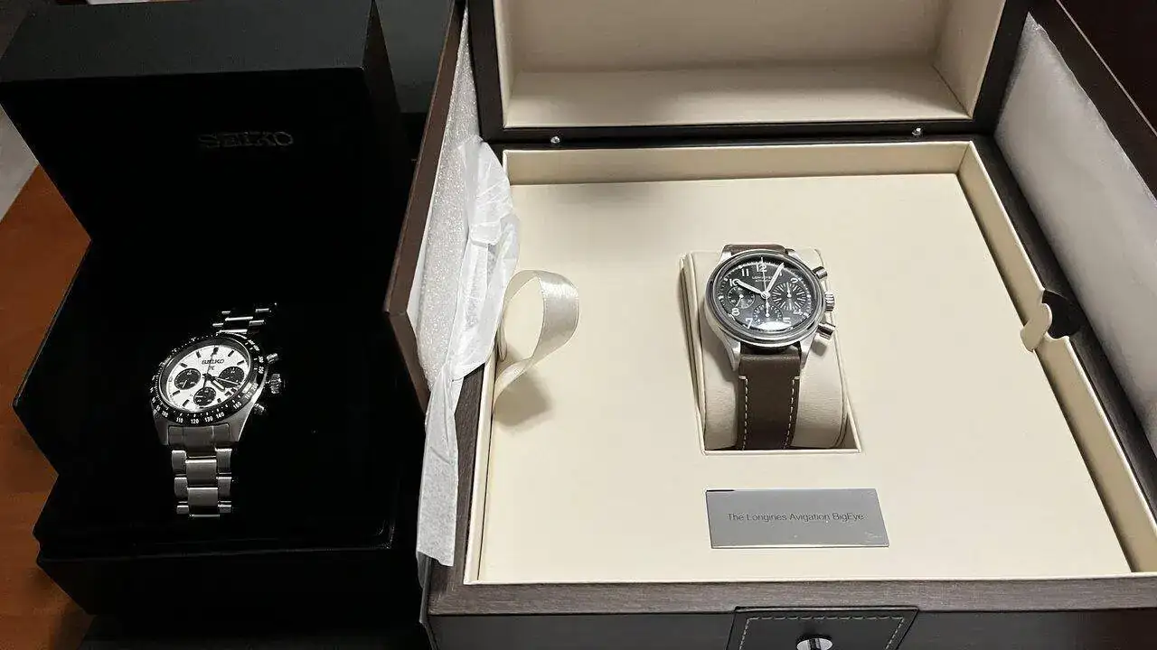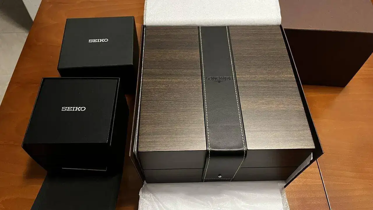 Os dejo aquí las fotos, no quiero aburrir con muchas, pero si alguien tiene alguna duda o quiere que saque algo concreto que me diga. He querido sacar unas fotos a las cajas porque la diferencia en la presentación es importante. Personalmente me da igual y en concreto la caja de Longines me parece exageradamente grande, pero es un caja de madera muy bien presentada y delicadamente protegida. La del Seiko es correcta pero de otra gama, lógico por otro lado por la diferencia de precio entre los dos.